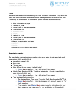 Usability Solutions Group compiled ten tasks likely undertaken by a user of the career portal. Based on our heuristic evaluation, we created seven scenarios to test with participants.